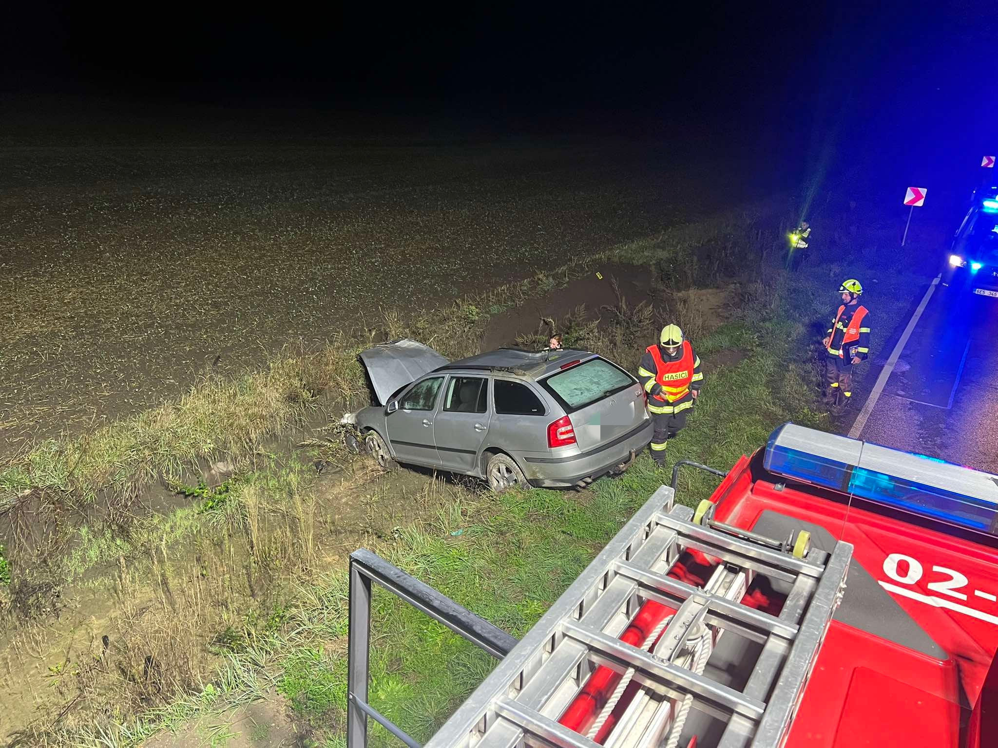 Dopravní nehoda se zraněním. Jednotka byla povolána k nehodě 1 OA, který se při nehodě přetočil přes střechu mimo komunikaci. Na místě: HS Holice, JSDH Dašice, ZZS, PČR.