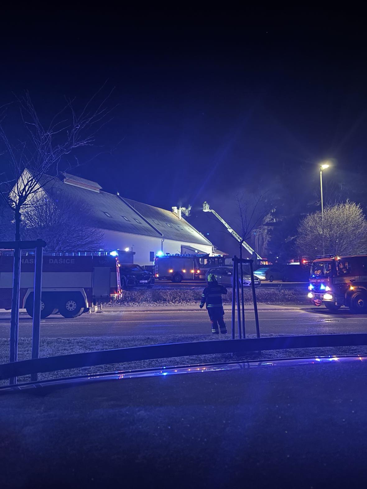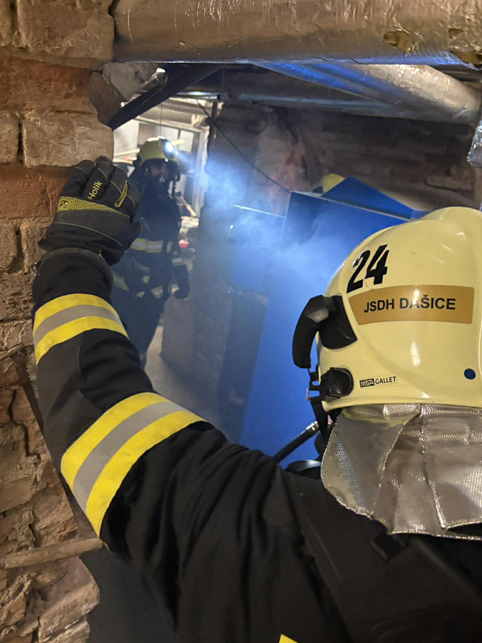 | Požár nízké budovy. Po příjezdu 1. jednotky bylo zjištěno, že se jedná o požár sazí v komíně. Pomocí kominického nářadí a automobilového žebříku byli saze strhnuty a následně vybrány. Topeniště kamen také vybráno, aby nehrozilo rozšíření požáru mimo komínové těleso. Na místě: CHS Pardubice, HS Holice, JSDH Dašice, JSDH Dolní Roveň, JSDH Moravany, PČR |