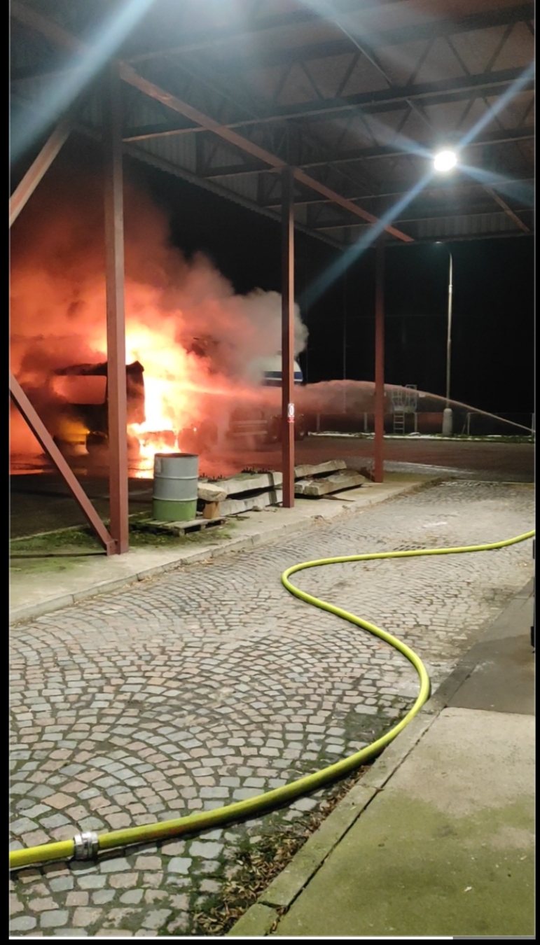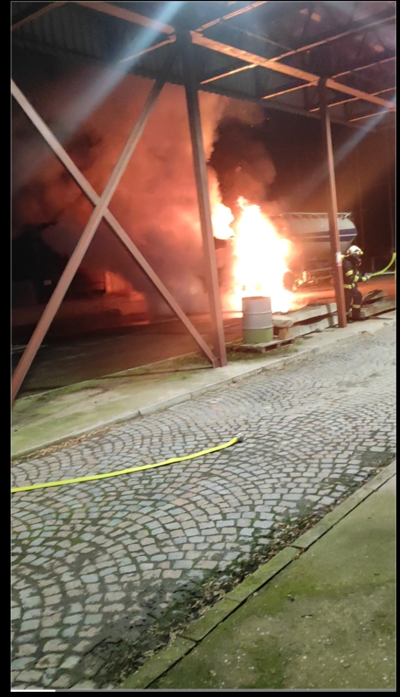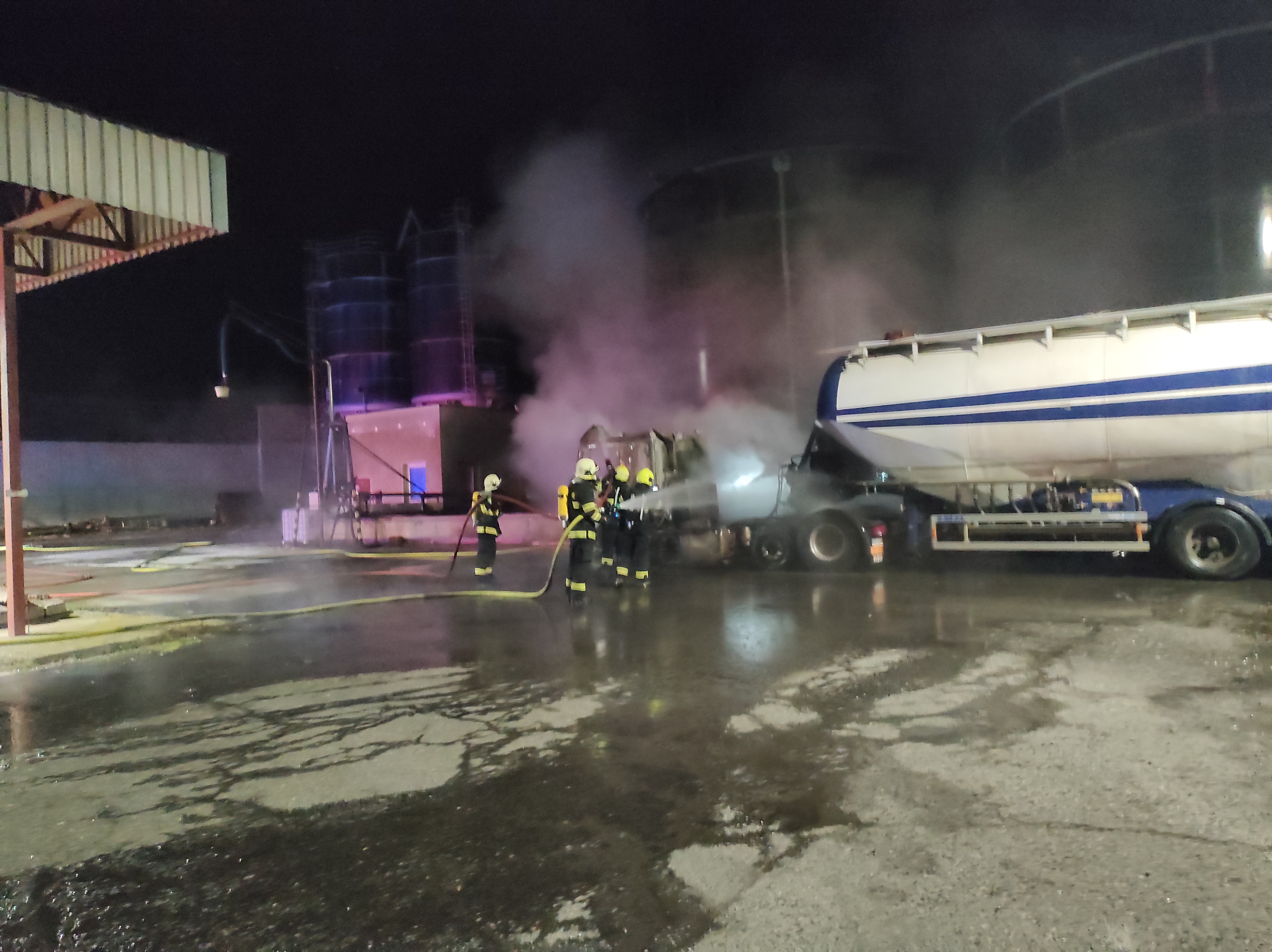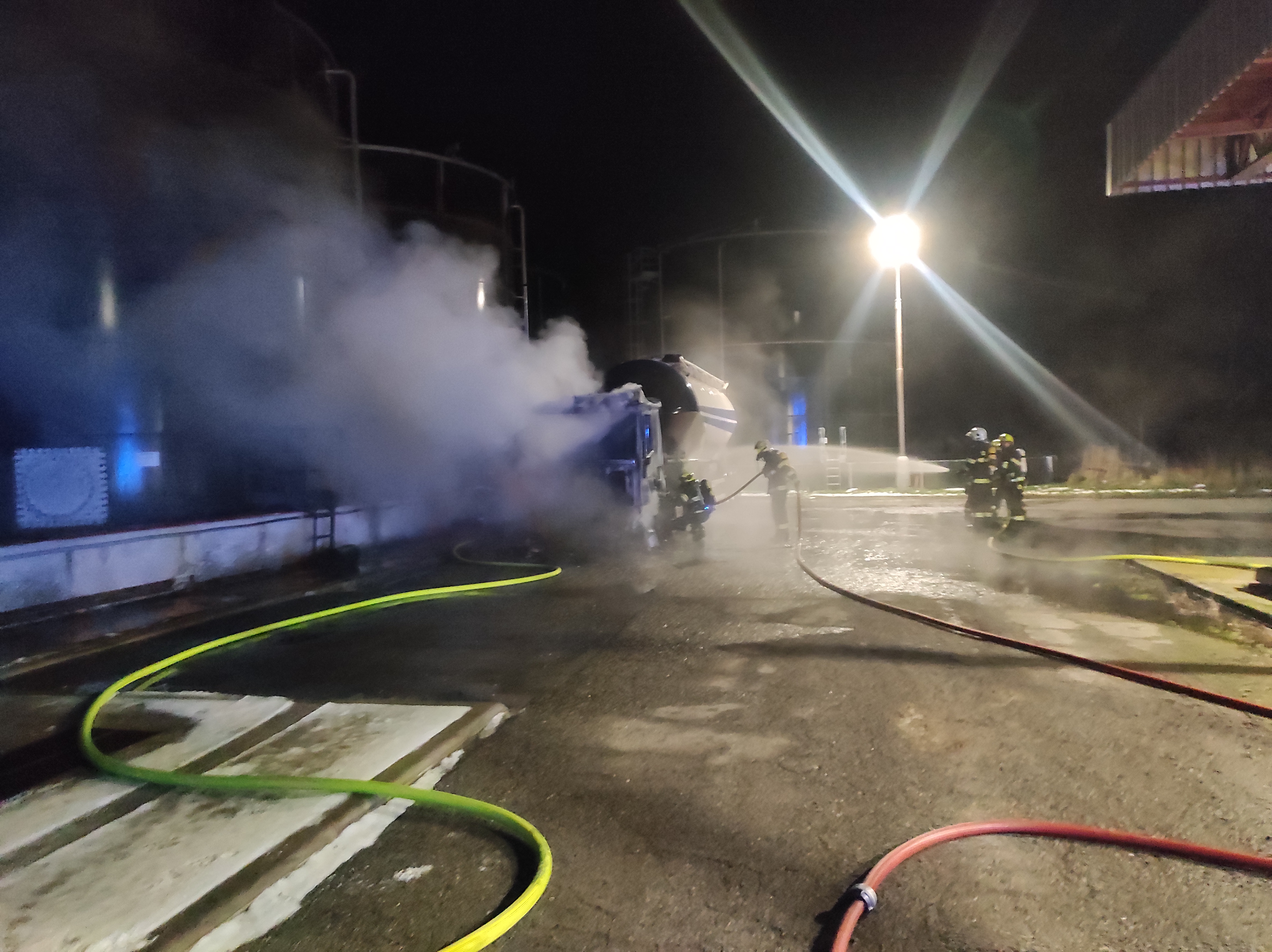 | Požár dopravního prostředku. Jednotka byla povolána k požáru kamionu s cisternou do areálu firmy na výrobu hnojiv. Jednotky pomocí tří C proudu požár uhasili, cisternu se podařilo uchránit. Na místě: HS Holice, JSDH Dašice, JSDH Dolní Roveň, PČR. |